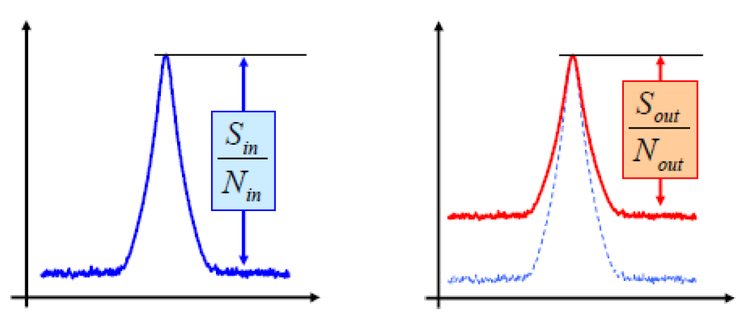 噪声系数描述被测件DUT内部噪声程度,对信噪比的恶化程度,即输入信噪比和输出信噪比的比值。