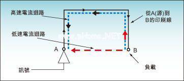 在任何高速数字电路设计中,处理噪音和电磁干扰(EMI)都是必然的挑战。处理音视讯和通讯讯号的数字讯号处理(DSP)系统特别容易遭受这些干扰,设计时应该及早理清潜在的噪音和干扰源,并及早采取措施将这些干扰降到*.小。良好的规划将减少除错阶段中的大量时间和工作反复,可节省整体设计时间和成本。如今,*.快.的DSP的内部频率速率高达数GHz,而发射和接收讯号的频率高达数百 MHz。这些高速开关讯号将会产生大量的噪音和干扰,将影响系统性能并产生电平很高的EMI。而DSP系统也变得更加复杂,如具有音视讯接口、LCD和无线通讯功能,以太网络和USB控制器、电源、振荡器、驱动控制以及其它各种电路,它们都将产生噪音,也都会受到相邻组件的影响。音视讯系统中特别容易产生这些问题,因为噪音会引起微妙的性能衰减,但这几乎不会显露在离散的数据之中。重点是要从设计开始就着手解决噪音和干扰问题。许多设计第.一.次都没有通过联邦通讯委员会(FCC)的电磁兼容测试。如果在早期设计中,在低噪音和低干扰设计方法上花费一些时间,就会减少后续阶段的重新设计成本和产品上市时间的延迟。因此,从设计一开始,开发工程师就应该着眼于:1. 选用在动态负载条件下具有低开关噪音的电源;2. 将高速讯号线间的串扰降到*.小;3. 高频和低频退耦;4. 具有*.小.传输线效应的优良讯号完整性;如果实现了这些目标,开发工程师就能有效避免噪音和EMI方面的缺陷。对于高速DSP而言,降低噪音是*.重.要.的设计准则之一。来自任何噪声源的过大噪音,都会导致随机逻辑和锁相环(PLL)失效,降低可靠性。还会导致影响FCC认证测试的辐射干扰。此外,除错一个噪音很大的系统是极端困难的;因此,要消除噪音──若能彻底消除的话──将要求在电路板设计中花费大量心血。在音视讯系统中,即便是比较小的干扰,也会对*终产品的性能产生显著影响。例如,音讯撷取和播放系统中,性能将取决于所用音讯编译码的质量、电源噪音、PCB布线质量、相邻电路间的串扰大小等。而且,采样频率的稳定度要求也非常高,以避免出现不希望的杂音,如在播放和撷取时的‘砰砰’声和‘喀嚓’声。在视讯系统中,主要的挑战是消除色彩失真、60Hz‘嗡嗡’声以及音讯敲击声。这些对高质量视讯的系统都是有害的,例如**监控方面的应用。实际上,上述这些问题通常都与视讯电路板的设计**有关,包括:电源噪音传到视讯的DAC输出上;音讯播放引起电源瞬变;音讯讯号耦合到高阻抗的视讯电路讯号在线。这些典型的视讯问题源包括:同步和画素频率的过冲和欠冲;影响色彩的编译码和画素频率抖动;缺少端接电阻的影像失真;音视讯隔离较差引起的闪烁。音视讯应用容易产生的噪音干扰问题,对于所有要求具有很低误码率的通讯系统来说也是常见的。在通讯系统中,辐射不仅仅产生EMI问题,还会阻塞其它的通讯讯息信道,引起伪讯息信道检测。采用适当的电路板设计、屏蔽技术以及RF和混合的模拟/数字讯号的隔离等技术,就可以解决这些挑战。在高速DSP系统中有许多潜在的开关噪声源,包括:讯号线间的串扰;传输线效应引起的反射;退耦电容不合适引起的电压降低;高电感的电源线,振荡器和锁相环电路;开关电源;线形调整器不稳定性所引起的大容性负载;磁盘驱动器。这些问题由电耦合和磁耦合共同产生。电耦合的产生是由于相邻讯号和电路的寄生电容和互感所引起,而磁耦合的形成是由于相邻的讯号线形成辐射天线所导致。如果辐射干扰足够强的话,将会导致能够摧毁其它系统的EMI问题。当高速DSP系统中的噪音无法根本消除时,则应该将其减到*小。电子零组件内部都有噪音,故仔细选择组件特性,并选用适当的组件至关重要。除了正确选择组件外,还有两种通用的技术,即PCB布线和回路退耦可协助控制系统噪音。一个优良的PCB布线将降低噪音通道产生的可能性。另外,还减少了能够传播到印刷线和电流回路上的辐射,退耦可避免相邻电路产生的噪音影响。*.好.的方法是从源头上滤除噪音,不过也可以使相邻的电路对噪音不感应或消除噪音的耦合通道。以下将讨论几种可解决由系统噪音和EMI引发之常见问题的技术。低速讯号电流沿阻抗*小,即*.短.的路径返回源端。而高速讯号则是沿电感*.小.的路径返回:这样的*.小.的回路面积位于讯号线下方,如图1所示。因此,高速讯号设计目标之一就是为讯号电流提供*.小.的电感回路。这可以利用电源平面和地平面来实现。电源平面透过形成自然的高频退耦电容将寄生电感降到*.小。而地平面形成一个屏蔽面,即众所周知的镜像平面,能够提供*.短.的电流回路。 一种有效的PCB布线方法就是将电源平面和地平面靠在一起。这样形成了高平面电容和低阻抗,有利于降低噪音和辐射。为了屏蔽,*.好.的选择是:关键讯号*.好.布到靠近地平面一边,而其余的则应靠近电源平面一侧。在高速视讯系统中,保持回路短的目的意味着视讯地不能被隔离。而必须被隔离的音讯地,绝不能在数据输入点处短接到数字地上,如图2所示。为PLL供电时,电源隔离是非常重要的,因为PLL对噪音非常敏感,且对于稳定系统来说,要求抖动非常低。你还必须选择模拟或数字PLL,模拟PLL对噪音的敏感度比数位PLL低。如图4所示,具有低截至频率的Π型滤波器经常被用来隔离PLL与系统中的其它高速电路。一